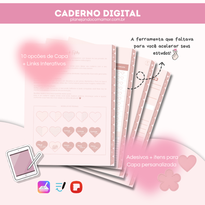 ✨ Caderno Digital “Meu Coração é Rosa” ✨
